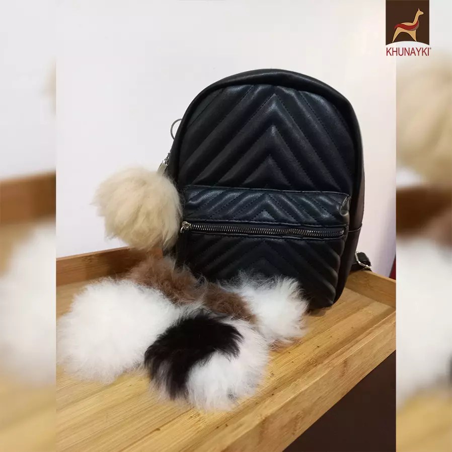 Keychain set 5 units pompoms assorted natural colors. Combine with your favorite accessories. Fashion handbag pompom handmade alpaca fur ultra soft.